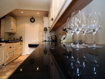 This kitchen is an example of a customer-specified bespoke kitchen; the hand-painted units and dark Granite work surfaces were all produced according to the customer's requirements.