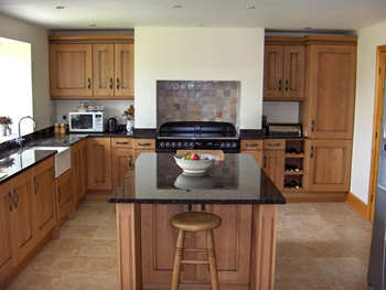 This customer specified oak units with a Star Galaxy Granite work surface, which has natural copper content.